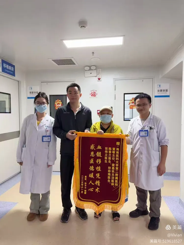 经过系统治疗与精心护理,患者造血功能成功重建,移植后各项关键指标恢复良好,未发生严重并发症,达到出院标准。此次治疗成功,是标准诊疗方案、团队协作与患者配合共同作用的结果。今日,她亲自送来这面锦旗。与入院时相比,她气色良好,行动自如。交谈中,她多次感谢团队的专业与照护。而团队成员则更为她的毅力与乐观所触动。