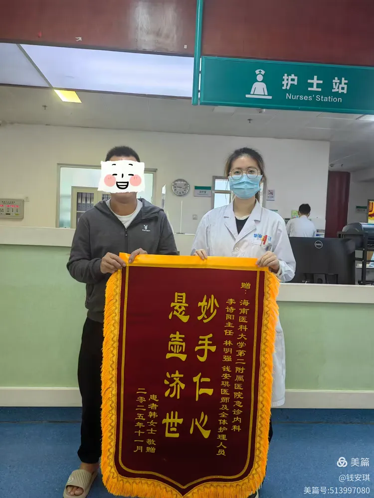 治疗期间,海南医科大学第二附属医院急诊病房李诗阳主任医生,林明强副主任医生,钱安琪住院医生团对制定精准方案,一边严密监测并调整血糖,一边开展抗感染、止咳化痰治疗;护理团队则24小时细心照料,按时为患者翻身、排痰、进行专业压疮护理,用耐心与细致缓解患者不适。在医护人员的共同努力下,韩女士病情持续好转,最终顺利康复出院。